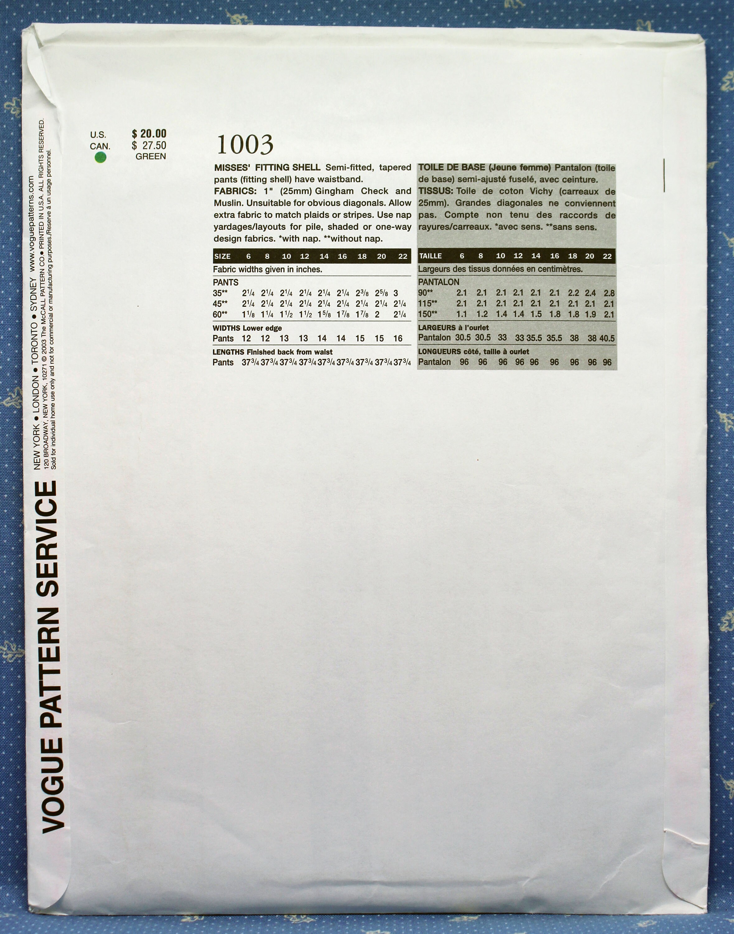 Amazon Com Vogue Patterns V1003 Misses Fitting Shell Size 20 Arts Crafts Sewing